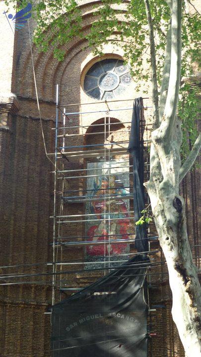 Don Jaime Rippa y su equipo de Bellas Artes de la UNR, trabajaron para realizar un mural de San Miguel Arcángel que se colocó en la hornacina de la fachada del Templo Parroquial.