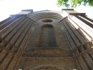 En primer lugar se realizó la limpieza e hidrolavado del frente del templo y luego se repararon huecos de ladrillos y se impermeabilizó la superficie.